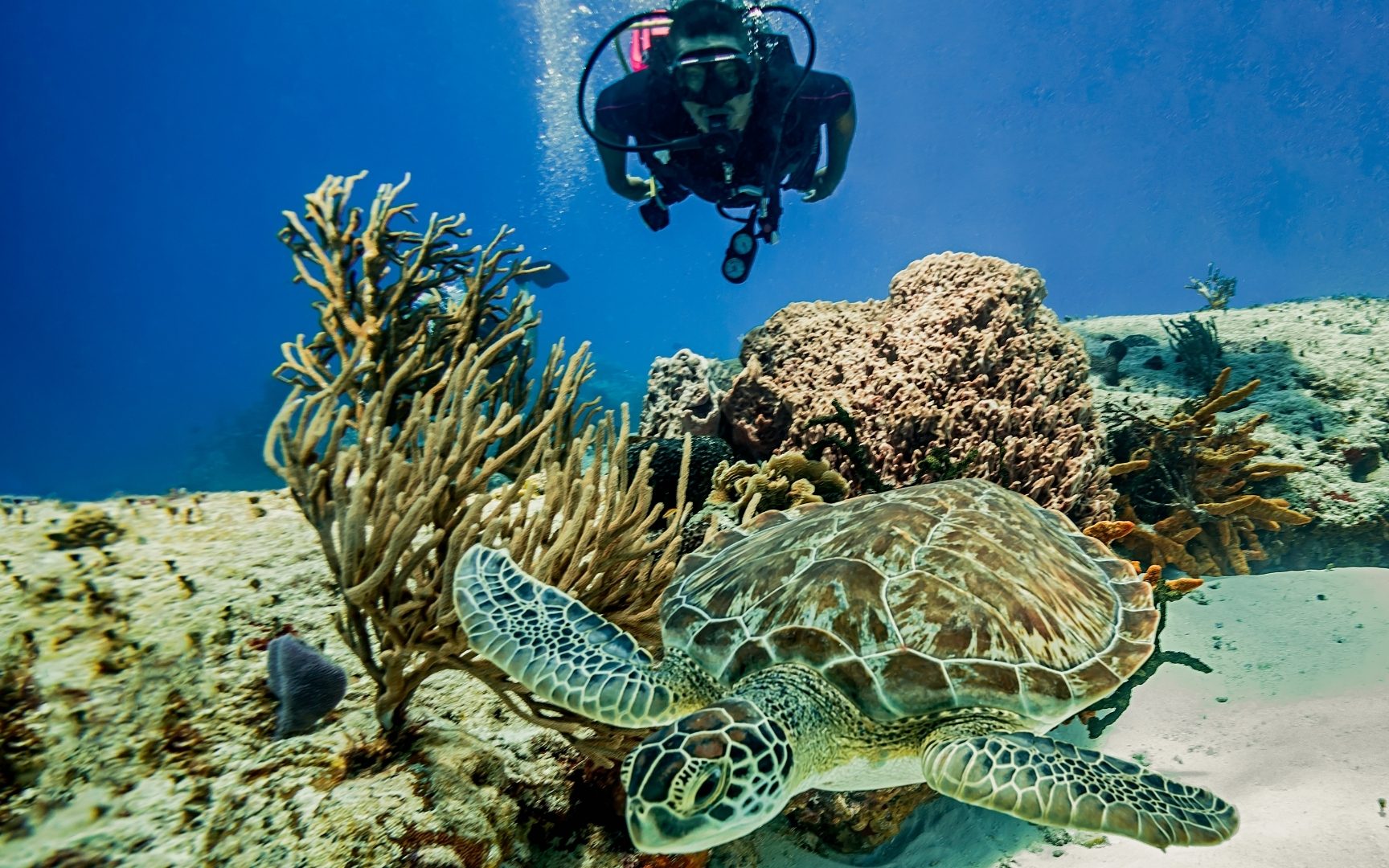 The full PADI Open Water Diver course consists of five theory-based modules, five confined water dives, and four open-water dives. You are required to complete your coursework online through the PADI website (using an eLearning Course link that we will provide to you) before arriving on the island.